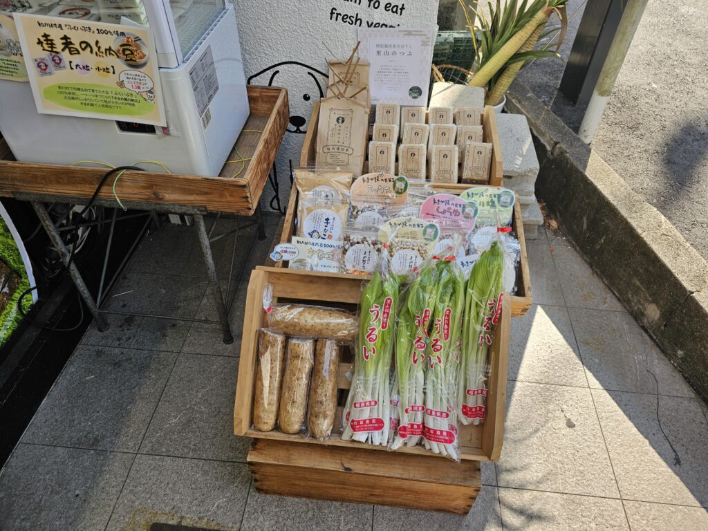 牛乳、豆、納豆、お米、うど・・・とめちゃくちゃ幅広い鮫川産品の販売です。